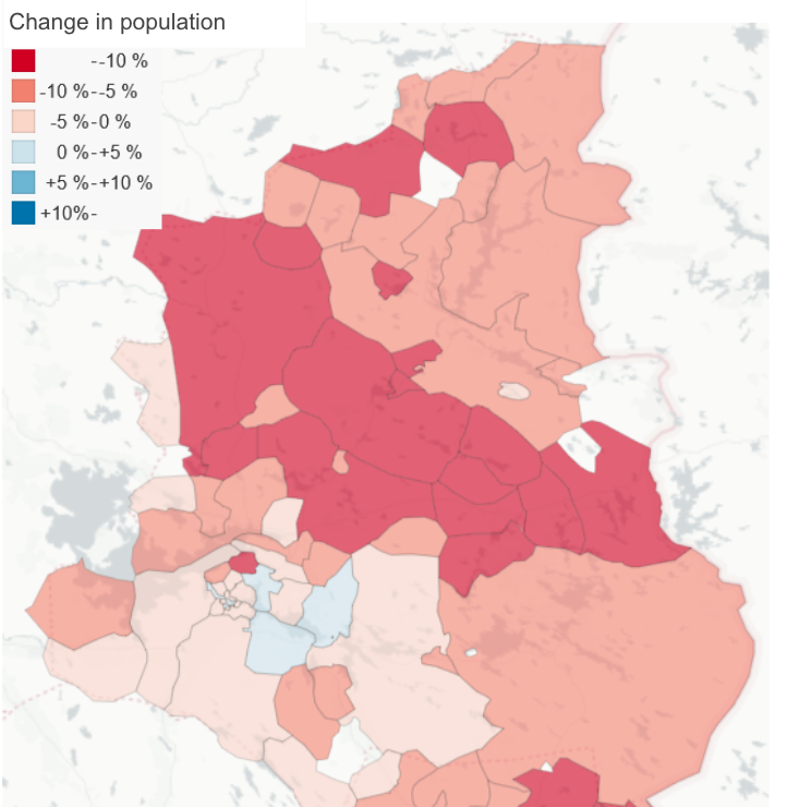 The population structure of different areas changes as a result of migration between and within municipalities, immigration, births, and deaths. This changes the operating environment of rescue departments and the demand for their services. Population change is not linear, and even within a single municipality, the direction and pace of demographic change can differ significantly from one area to another.