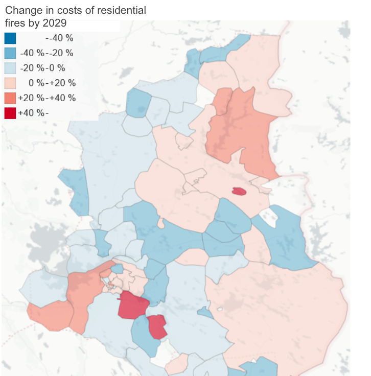 So far, the project has examined the direct and indirect costs of residential building fires. The costs caused by traffic accidents and forest fires will be added to the model in the near future.