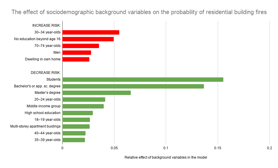 In the Regional Forecasting Models project, the background variables used to explain variation in the risk of residential building fires, at the model’s current stage of development, are gender, age group, level of education, income level, employment status, form of housing, type of residential building, and family structure.